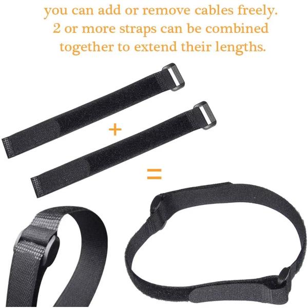 Self-gripping Nylon Black Hook and Loop Fastener Cable Strap with Buckle Reusable Wrap Tape for USB Cables